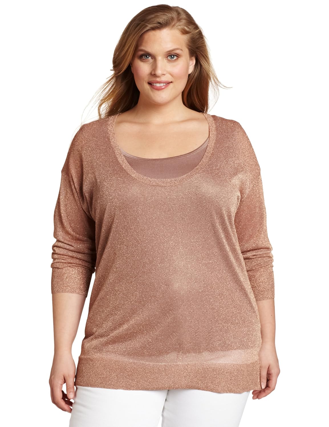 Plus-size Shimmer Scoop Neck Top By Calvin Klein