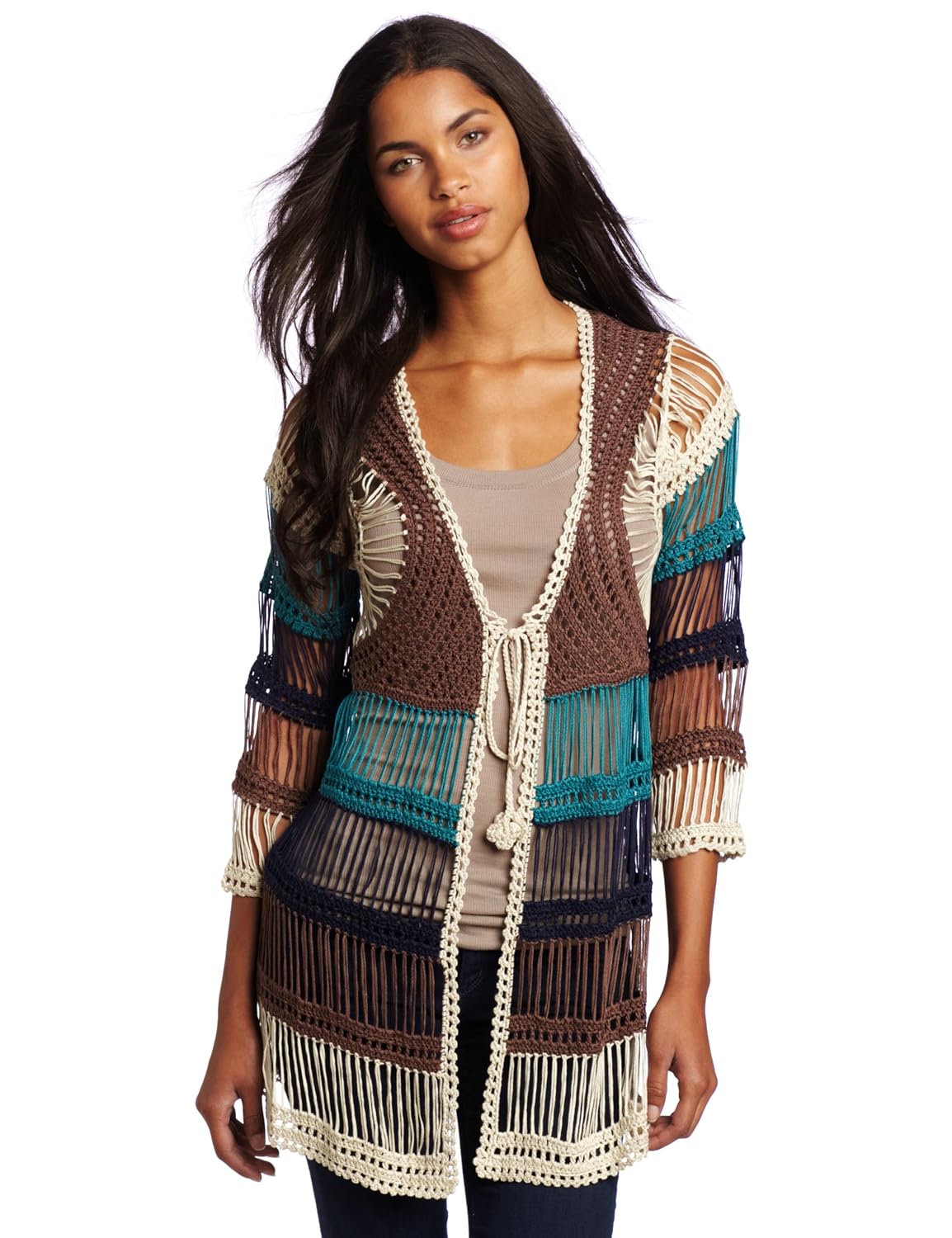 - This crocheted Willow & Clay cardigan has a V-neck with
